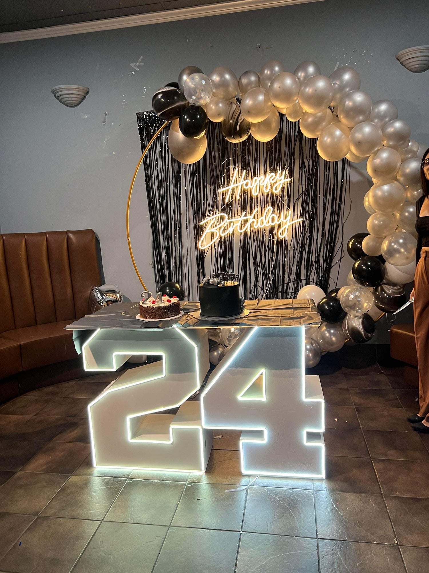 Add a touch of fun and energy to your party with a custom neon sign. You can choose a message or phrase that represents the birthday person or the theme of the party. Neon sign rentals are also available if you don't want to purchase one. This custom neon sign company offers rentals for local Greater Vancouver region.