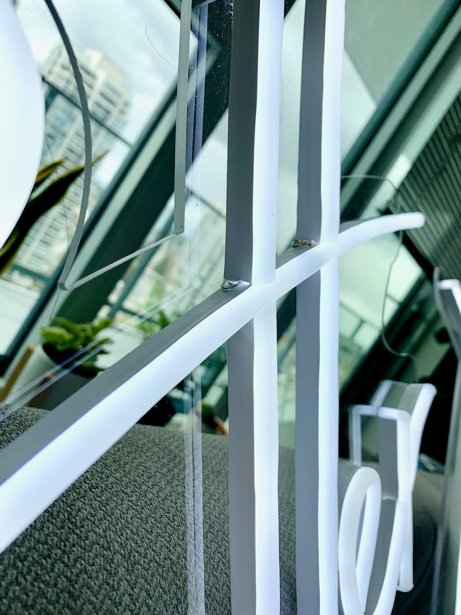 Once the design is finalized we start by laser cutting the outline of the sign onto the acrylic. We then use neon strips to trace the design of the sign while gluing and solder them into place.