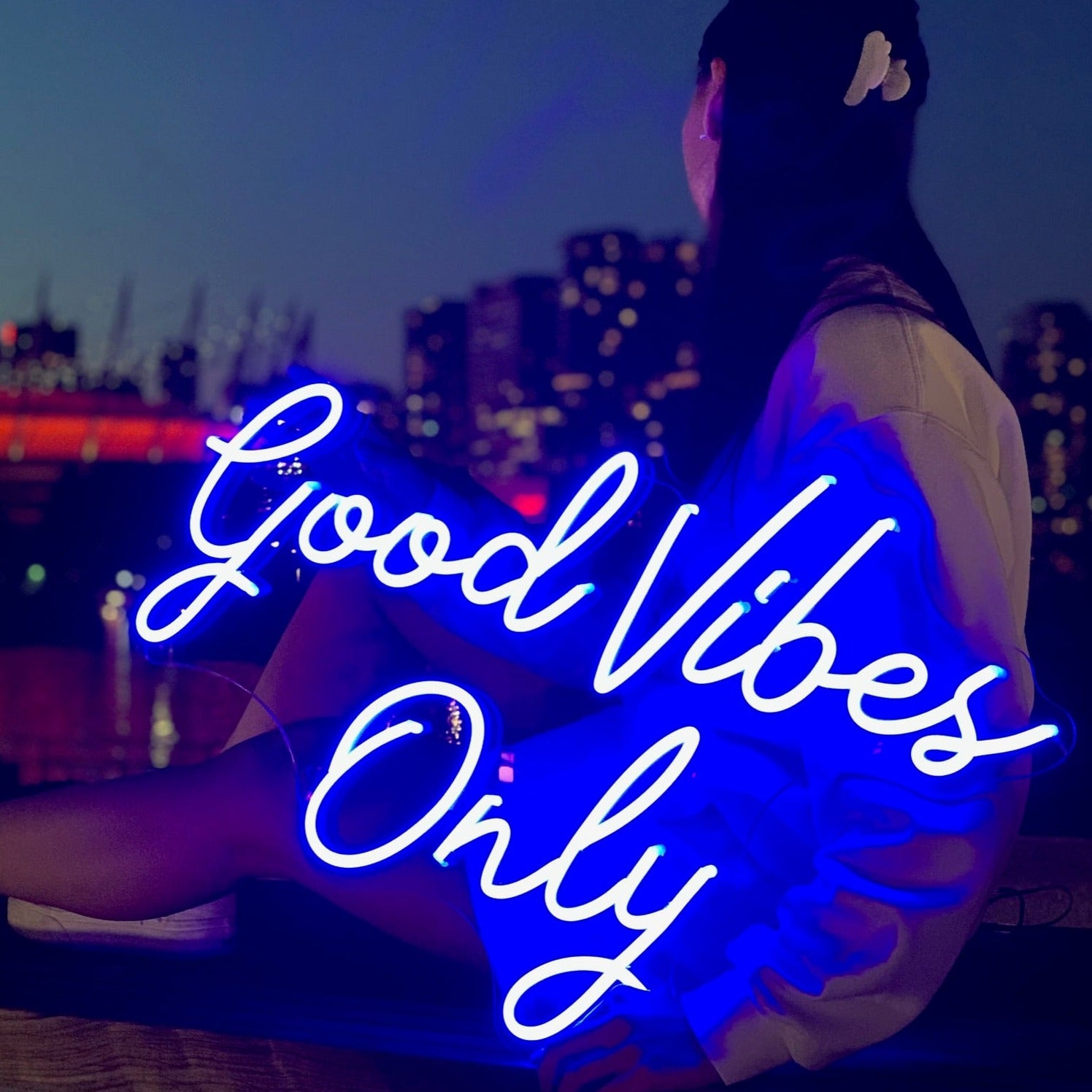 Bring positive energy and a touch of trendy style to your home with the GOOD VIBES ONLY — LED NEON SIGN. This stunning neon sign features bold blue letters and is sure to add a touch of fun and inspiration to any space. Whether you're looking to add some personality to your bedroom, living room, or even your office, this sign is sure to make a statement.