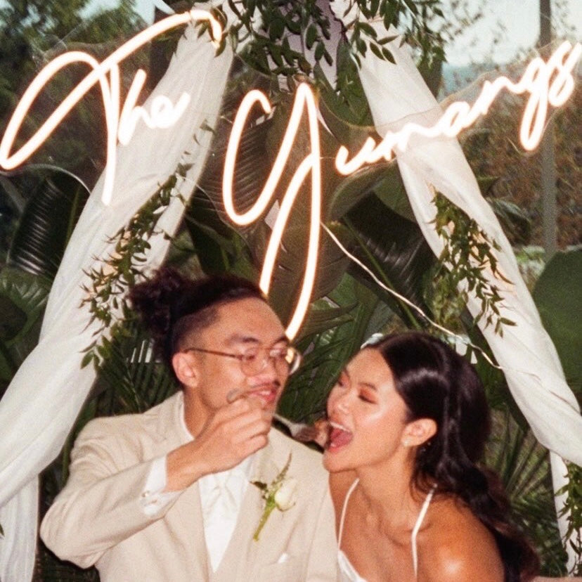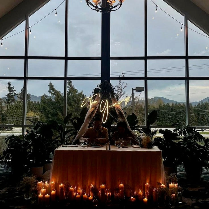 Light up your special moment with a stunning LED neon sign featuring your last name in bright, eye-catching neon lights. Whether it's for a photo backdrop or to add a touch of elegance to your reception, our neon wedding signs will make your day even more memorable.